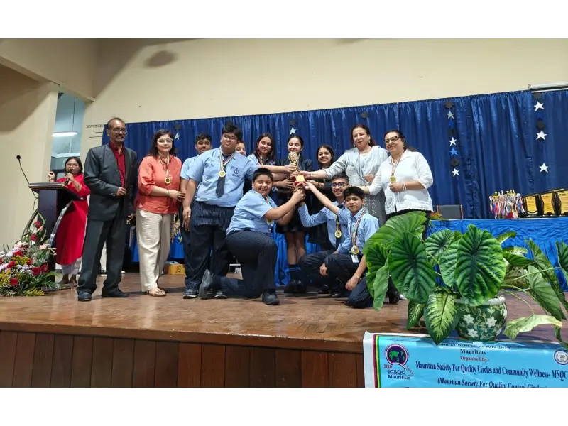 Shalom Hills International School brought great pride to the nation by achieving remarkable success at the 26th International Convention on Students’ Quality Circles (ICSQC) held in Mauritius from 21st to 27th July 2025. A delegation of fourteen students, guided by the visionary leadership of Founder, Dr Mrs Lilly George, and the dynamic mentorship of Sherpa & Vice Chairman - Mr. Dennis George, represented the school with distinction on this prestigious global platform, which witnessed participation from over 25 leading institutions across the world.